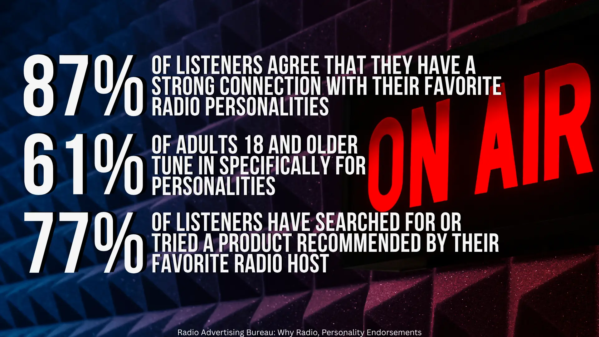 That combination – a strong relationship and respected expertise – is what makes our air personalities so influential and why endorsements and host-read commercials offer brands and businesses a powerful way to build credibility.