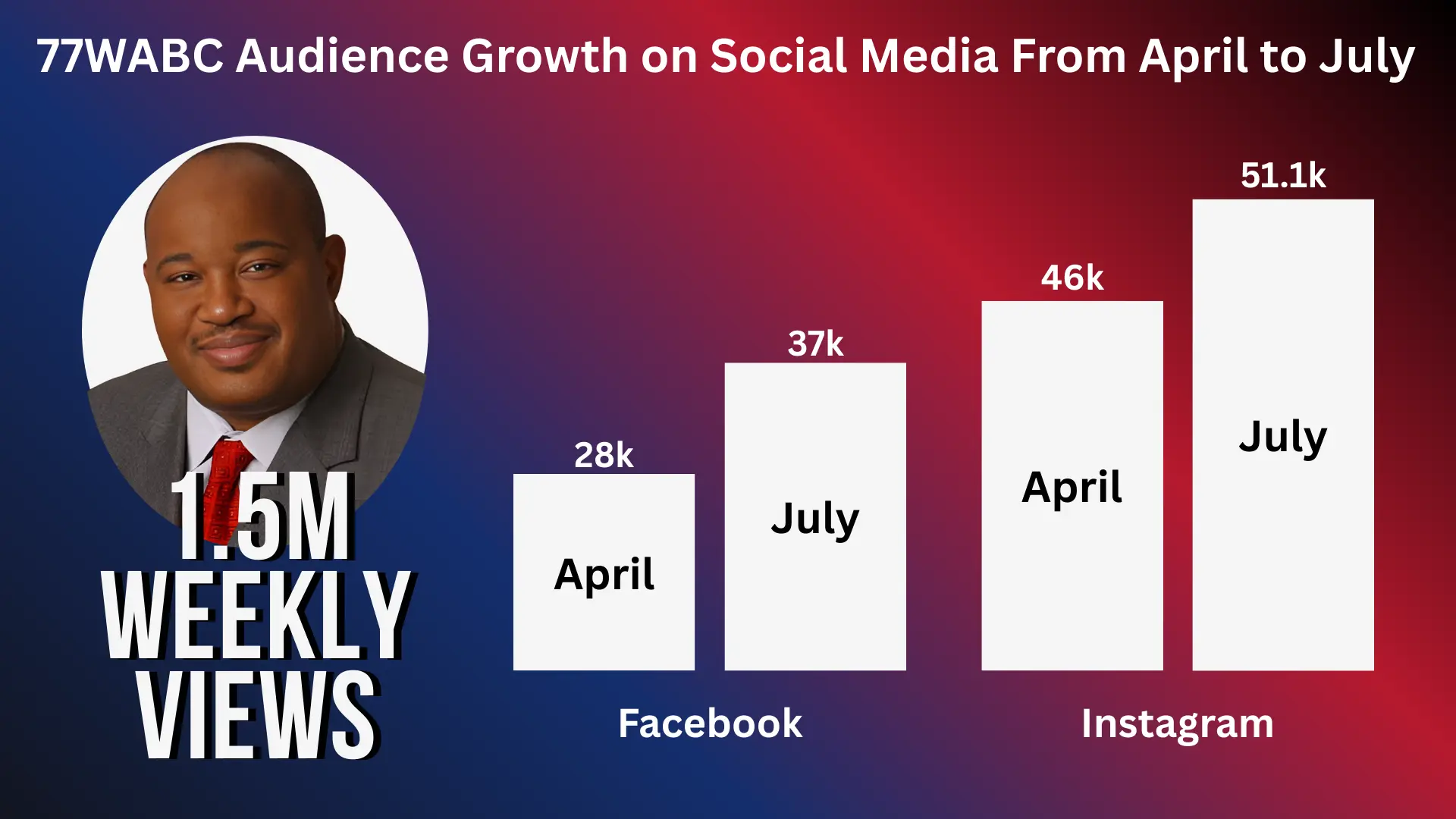 77WABC’s social media is on fire! In the past three months alone, our Facebook followers increased by 24% and our Instagram by 9%.