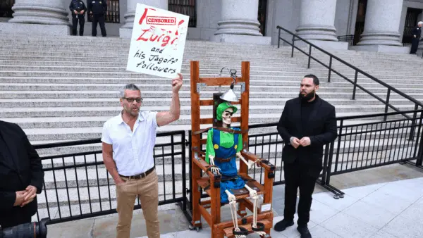 He also had a skeleton-like effigy of Mangione — dressed as Luigi from the Mario Brothers video games — seated in an electric chair. Meanwhile, some of the accused killer’s supporters took time to specifically criticize the death penalty.