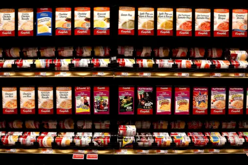 Cans of Campbell’s chicken noodle soup line a supermarket shelf in Bellingham