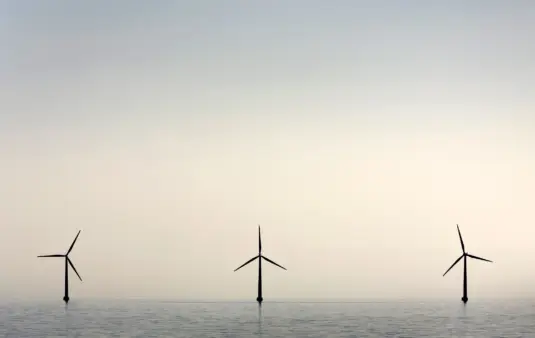 A cargo ship passes in front of an off-shore wind farm in the English Channel, south east England, August 29, 2014. © REUTERS/Toby Melville