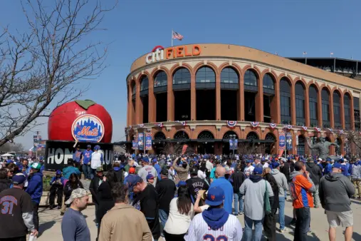 Mets fans wait to enter Citi Field before opening day against the Pittsburgh Pirates in 2026. Brad Penner-Imagn Images