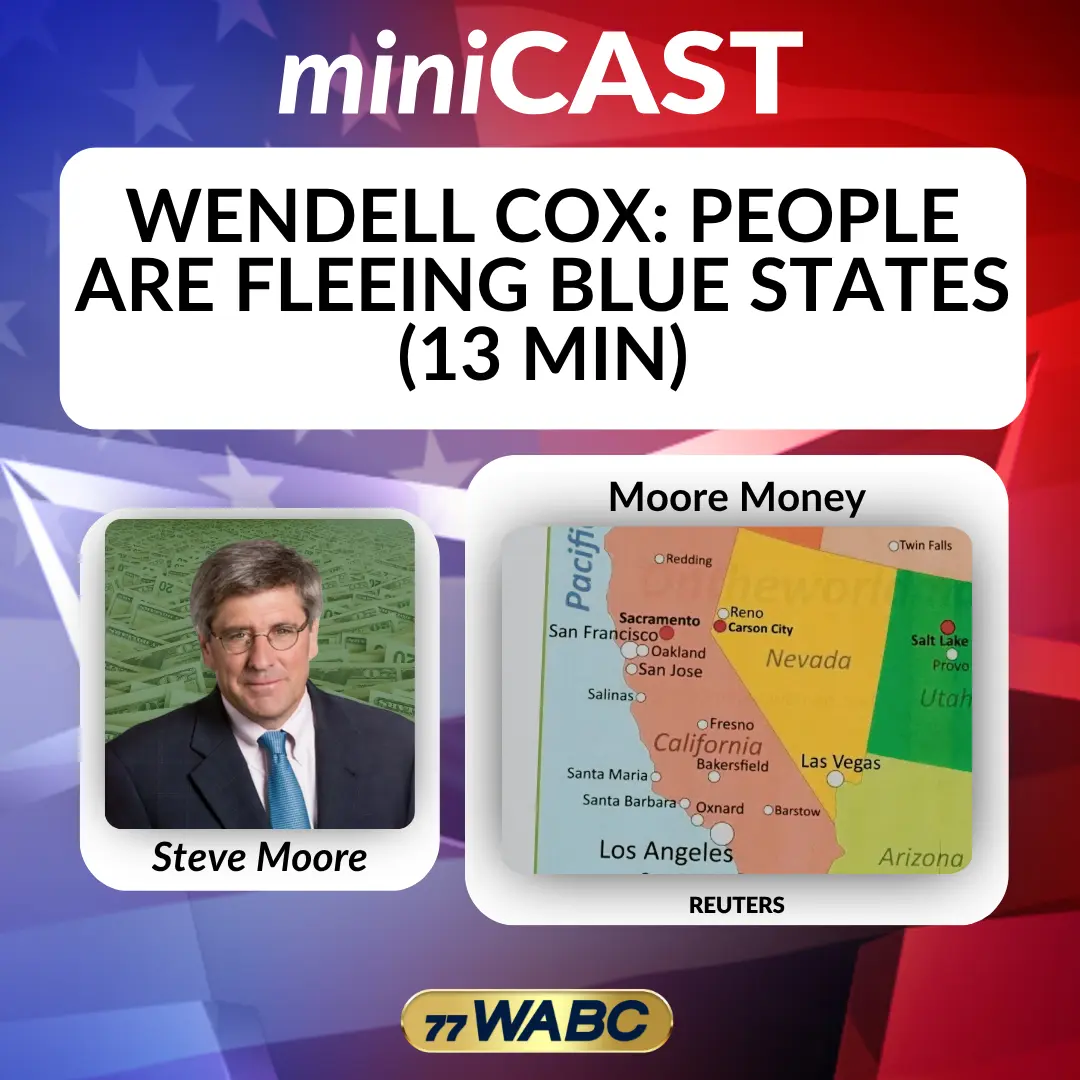 Steve Moore and demographer Wendell Cox discussing a transformative interstate migration trend driven by new IRS data on income and population shifts. The conversation highlights a massive wealth transfer from high-tax "blue" states like California, New York, and Illinois to low-tax "red" and "purple" states such as Florida and Texas. The speakers argue that economic policy and cost of living are the primary catalysts for this movement, noting that states with low or no income tax are successfully attracting middle-class and wealthy residents.